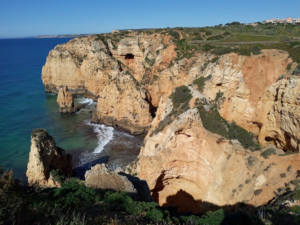 Pegamos a trilha sobre as falésias em direção da Ponta da Piedade, mas dessa vez fomos pelo outro lado, para explorar a metade oeste, faltante do dia anterior. Começamos pela praia do Canavial